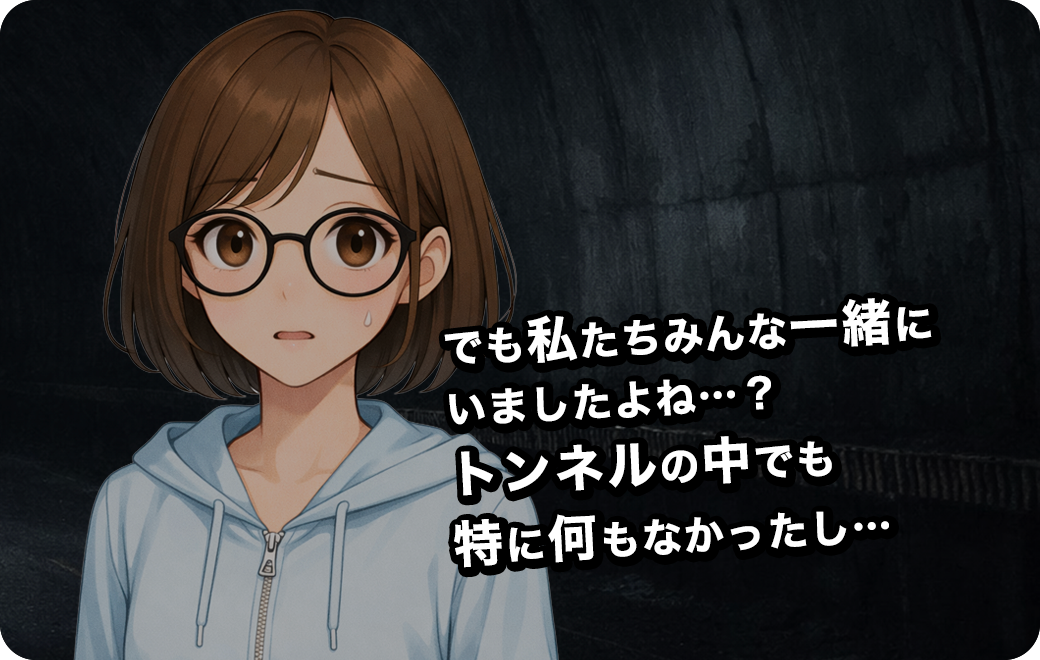 でも私たちみんな一緒にいましたよね…? トンネルの中でも特に何もなかったし…