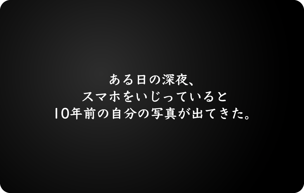 ある日の深夜、スマホをいじっていると10年前の自分の写真が出てきた。